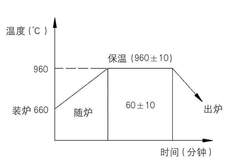 5、加热规范。按标准确定TC4钛合金始锻温度为960℃,终锻温度为800℃,保温时间0.8min/mm。钛合金的热传导率低,为防止过热氧化和吸氢,新炉子和长时间不使用的炉子先要空烧除去水分再使用,电炉温度场精度±10℃。温度过高,组织粗化,晶粒粗大;温度过低,变形抗力大,易产生裂纹等锻造缺陷。制定加热曲线如图1所示。